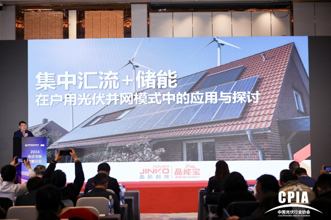 雷火竞技科技户用事业部品牌副总监周新亮代表晶能宝在大会上进行了内容分享,他结合行业发展趋势和机遇,深入剖析了晶能宝的平台实力、创新应用以及成功案例,尤其是晶能宝在集中汇流和储能在户用光伏并网模式中的实际应用案例——山西省晋中市祁县峪口乡段家窑村整村汇流。